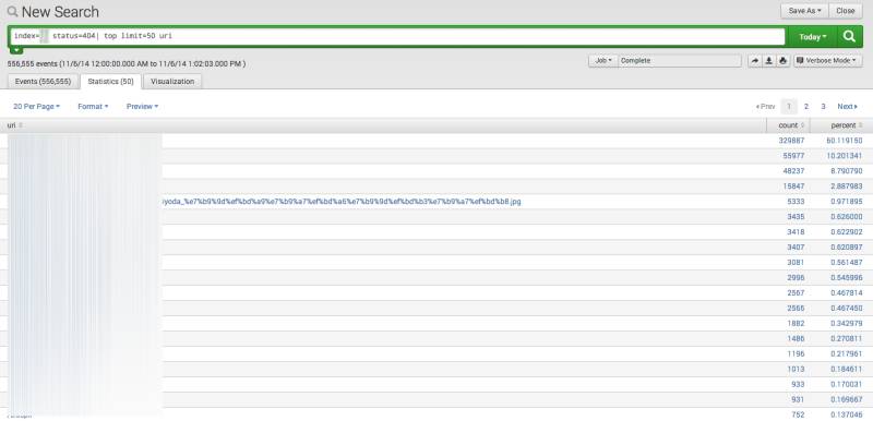 限制数量可自行确定,作者比较喜欢定为50条URL。查询语句执行完成后,点击Statistics选项,便可在列表中找出访客最多的404页面们。