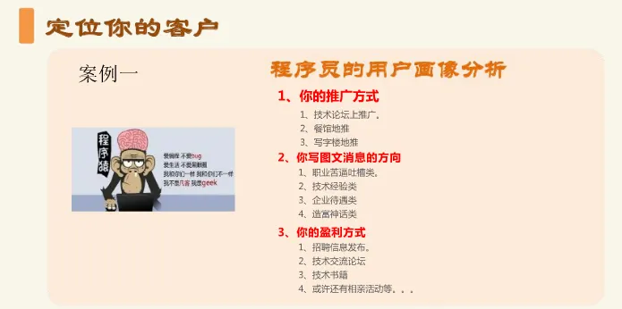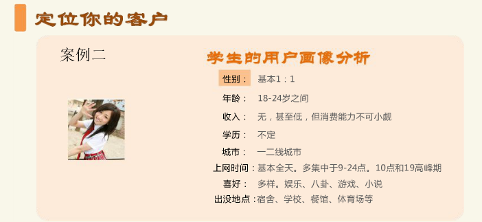 那么从事网络营销的用户画像会是什么样的?这里我用图文描述几个案例来分析: